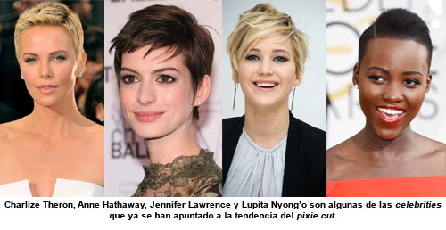 Las famosas ya apuestan por el estilo de pelo pixie, y así lo demostraron en la pasada gala de los Oscar: grandes estrellas como Charlize Theron, Anne Hathaway, Jennifer Lawrence o la ganadora del Oscar Lupita Nyong'o lucieron en la alfombra roja su melena muy corta, destacando su belleza natural sin grandes aspavientos.