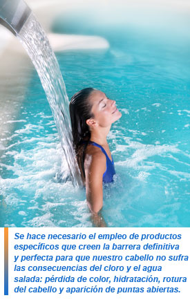 Cada vez son más las personas que apuestan por hábitos de vida saludables. La práctica habitual de deporte es imprescindible para combatir el sedentarismo y otras costumbres poco saludables. Dentro de esta extendida y saludable rutina, los deportes acuáticos han experimentado un notable apogeo en los últimos años, ya que permiten ejercitar nuestro cuerpo en un entorno tan agradable como el agua: kitesurf, aquagym, hidropilates, submarinismo... Sea en el mar o en la piscina, su práctica reiterada hace necesario el empleo de productos específicos que creen la barrera definitiva y perfecta para que nuestro cabello no sufra las consecuencias del cloro y el agua salada: pérdida de color, hidratación, rotura del cabello y aparición de puntas abiertas.
