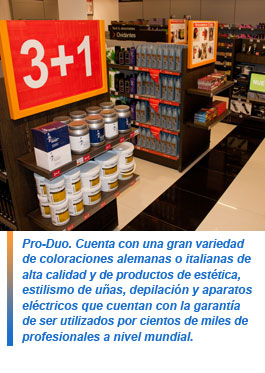 La distribución de marcas exclusivas es una de las razones fundamentales de que los profesionales acudan a las tiendas Pro-Duo. Cuenta con una gran variedad de coloraciones alemanas o italianas de alta calidad y de productos de estética, estilismo de uñas, depilación y aparatos eléctricos que cuentan con la garantía de ser utilizados por cientos de miles de profesionales a nivel mundial.