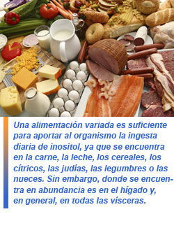 Como hemos mencionado, una alimentación variada es suficiente para aportar al organismo la ingesta diaria de inositol, ya que se encuentra en la carne, la leche, los cereales, los cítricos, las judías, las legumbres o las nueces. Sin embargo, donde se encuentra en abundancia es en el hígado y, en general, en todas las vísceras.
