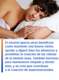 El inositol aporta otros beneficios como mantener una buena visión, ayudar a digerir bien los alimentos y posibilitar la creación de las células de la medula ósea. También funciona para mantenerse relajado y dormir bien, y se cree que contribuye a la creación de espermatozoides.