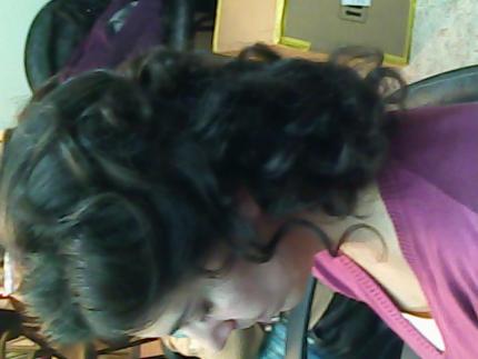 A mí por los lados me gusta mucho, lo que no me gusta tanto es la parte de detrás, la veo un poco sosa y plana. Por qúe no pruebas a darle un poco mas de volumen por dentrás, y entrelazar un poco más el cabello en esta zona? Te quedaría precioso a mi parecer ;)