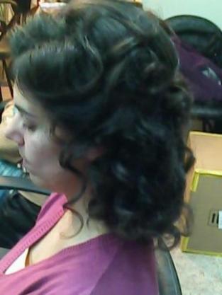 a ver ya va mi critica,antes de nada pedir perdon por si no gusta mi opinion...a ver a mi el lateral me gusta pero para e rostro de la chica no le faborece nada,ademas lo de detrs lo veo muy muy simple,,porque no pruvas hacer lo mismo pero con un recogido bajo y con flequillo hacia un lado bien estirado y recogido...ademas si quiee llevar velo le va a quedar mejor un recogido