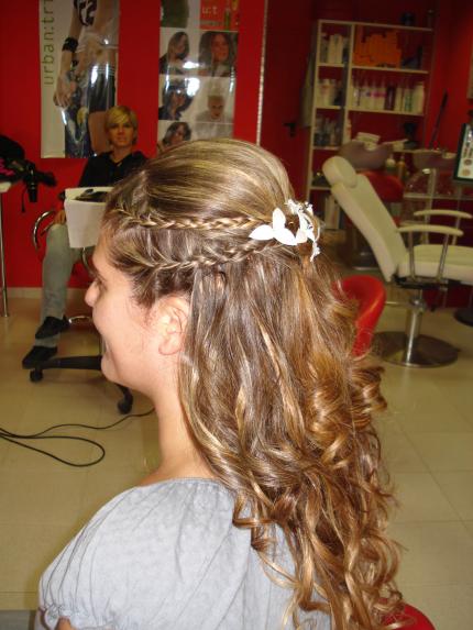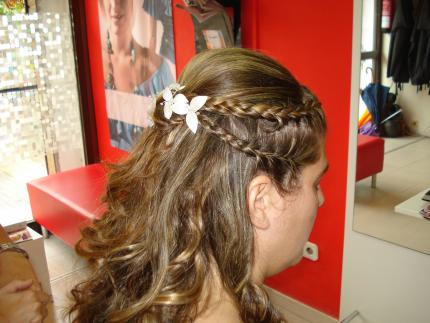 me gusta la idea,me imagino que el traje seria de estilo medieval,o similar ya que estos peinados donde las trenzas son las protagonistas,van muy bien. tambien es cierto que aunque ultimamente las sacaron algunas actrices y famosas la clientela normal en mi caso como algun complemento del recogido lo admiten,pero para novia siempre claro hay excepciones optan por algo mas elaborado,tambien decirte que como estabas de pruebas,hay cosas que imagino las mejorarias como las particiones del trenzado,la raya del frontal,en fin que me gusta y principalmente a quien le tiene que gustar es a la clienta.bsssssss..........