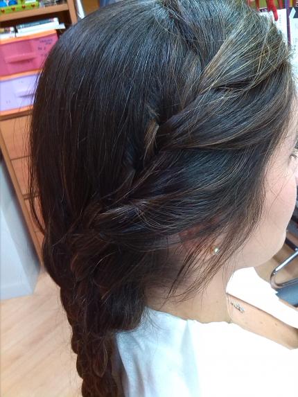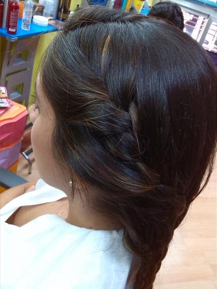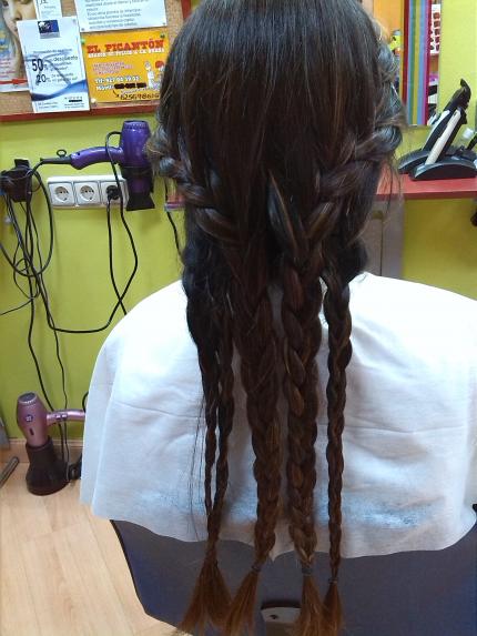 la gordas jejej son el resultado de las laterales que trencé cada una hasta el final....el cabello que me quedaba suelto de mitad de oreja hacia a bajo...realicé trenzas ...