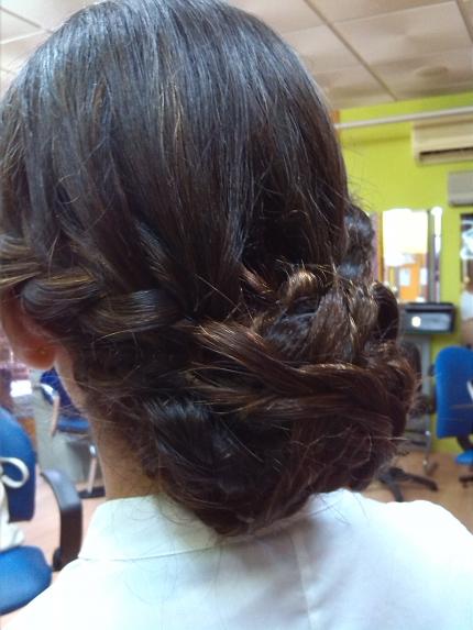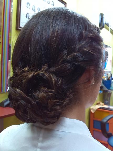 las finas hicieron de base....las fui cruzando y fijando con horquillas.....las trenzas gordas.....anudadas entre si .... le fui danndo forma al conjunto.un saludo