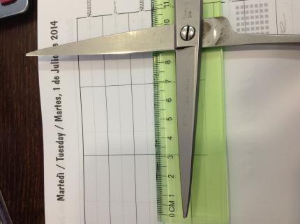 tienes que medir la tijera entera, no solo la hoja. El resultado de la medida lo divides entre 2.50 como bien te indica ade.