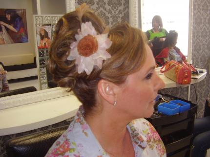 El peinado es muy bonito pero la flor es fea. Otro tocado hubiera ido mejor.