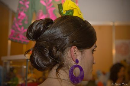 y ahora mi opinion....si en el desfile se impera ver el vestido de flamenco ,lo mejor pelo rayado y flor o peineta.