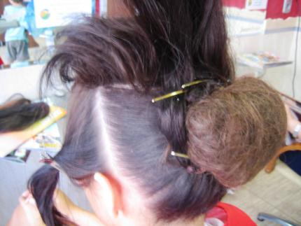 enganchamos los laterales, ella llevaba flequillo de lado (el frontal al gustp)
