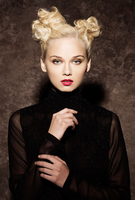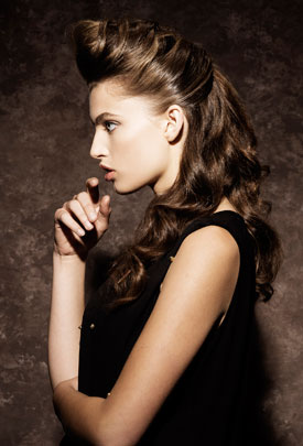 Basta con recoger la capa superior y de los laterales, para montarlos en lo alto de la cabeza formando gesto y volumen despegado de la raíz, dándole formas ahuecadas y de apariencia casual.