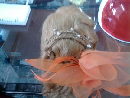 Raichel, pues a mí me a gustado el peinado de la maniquí; pero opino igual que Adelaida, que antes de hacer las fotos deberías dejar los peinados más pulidos, que a veces se ven de otra forma. Los adornos tampoco me gustan tan grandes, no quedan bien.Si el adorno lo a traído la clienta, se le explica que tan grandes no quedan bien, y que no le luce bien el peinado.