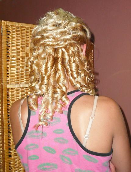 valkira los tirabuzones los tube que dejar asi por que eran las 3 de la tarde y salian a las 7, entre el calor y que las tenian que maquillar preferi no desacer mucho el rizo..