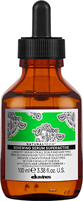Renewing Serum Superactive. Sérum que ayuda a preservar el bienestar del cuero cabelludo y del cabello, favoreciendo la longevidad y la conservación de su belleza natural. Procura una intensa acción de prevención contra las marcas del tiempo y ayuda a obtener un cuero cabelludo sano y equilibrado y, en consecuencia, cabellos fuertes, bellos y vitales. Además, aporta brillo y apariencia sedosa a cualquier cabellera.
