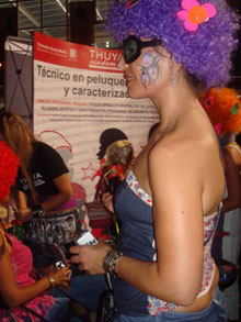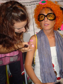Las alumnas de Thuya Academia ofrecieron: diseños con aguacolor en cara y cuerpo y decoraciones florales en las uñas. La fiesta, celebrada en un marco lúdico y veraniego en los jardines de que posee Dir en la Avenida Diagonal, permitió a los asistentes trasladarse por una noche a un guateque de los años 60.