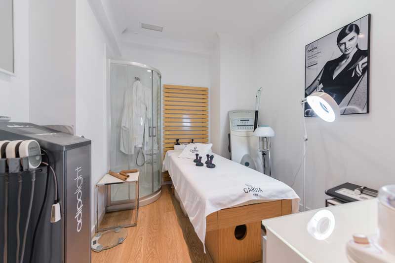 Saliendo del Área de procesos técnicos, encontraremos la Cabina de tratamiento donde se realizan los mejores rituales de belleza cosmética : purificante, hidratante, antiedad y corporales; y la sala pedispa, un rincón para evadirse.