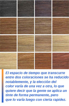 El espacio de tiempo que transcurre entre dos coloraciones se ha reducido notablemente, y la elección del color varía de una vez a otra, lo que quiere decir que la gente se aplica un tinte de forma permanente, pero que lo varía luego con cierta rapidez.