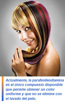 Actualmente, la parafenilendiamina es el único compuesto disponible que permite obtener un color uniforme y que no se elimine con el lavado del pelo.