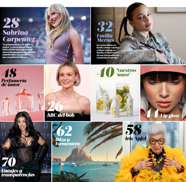 En esta edición, Salerm Cosmetics pone el foco en la evolución del cabello corto, la reinvención de los tonos rubios cálidos, la creciente tendencia de los rojos intensos y el auge del latte makeup como referente de belleza natural. Además, la revista dedica amplios espacios a iconos de estilo como Sabrina Carpenter, Emilia Mernes y Ariana Grande, así como a temas de interés profesional como la eficiencia energética en los salones o la inteligencia artificial aplicada al sector beauty.
