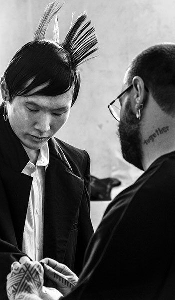 Siempre reivindicativo y analítico, Salon44, Xavi García y Franx de Cristal, y viceversa, logran proyectar las luces y las sombras de la cotidianeidad, necesaria, pero a veces, mordaza, que en 'Silencio', sin embargo, se abre a blancos y negros. Cortes urbanitas, líneas puras, y confecciones de igual calibre, desnudos y contra vestidos, en un giro de tuerca más de la que es ya moda y sello propio de ambos diseñadores, a la par dominadores de cabello y tejidos. Una colección al mismo tiempo vanguardista y atemporal, dualidad muy difícil de conseguir, que sin embargo, Salon44 Madrid, obtiene y persigue y retrata sin ataduras en 'Silencio'. Donde el cabello y las piezas confeccionadas se preparan para recibir a la falta de sonido, que permite la apertura a otros mundos desconocidos:
