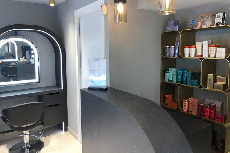 Además, gracias al mobiliario a medida, y el cuidado en los detalles, el salón transmite la elegancia y sofisticación que caracteriza a estos salones calificados de 'templos', templos del cuidado y la belleza del cabello.