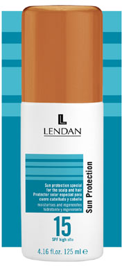Lendan® ha desarrollado un protector solar de alta eficacia que reúne las condiciones cosméticas adecuadas para ser aplicado en el cuero cabelludo. Lendan Scalp Sun Protection SPF15 es una loción especialmente formulada para llegar al cuero cabelludo sin ensuciar el cabello. Al aplicarse forma una capa protectora con factor de protección solar SPF 15 que además protege e hidrata intensamente el cabello sin engrasarlo. El envase es un cómodo aplicador con “cápsula anti-arena” que resulta especialmente práctico e higiénico.