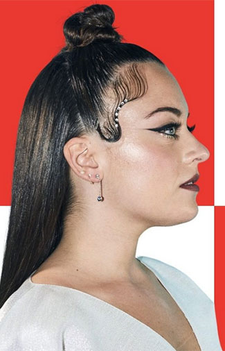 Para la artista Noelia Franco se creó uno de los looks más comentados de la apertura del festival, un semirrecogido pulcro con unos detalles muy especiales. "Para ella realizamos un moño alto con forma de nudo, todo con un acabado pulido y en las sienes unas baby waves con aplicaciones brillantes. El maquillaje, realizado por Carmen Barahona, destacaba por afilar la mirada con un eyeliner rasgado y labios de color marrón", afirma el peluquero Moyses Utrera de Antonio Eloy Pro.