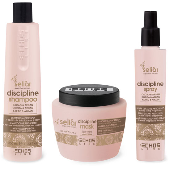Seliàr Discipline es el nuevo programa anticrespo, enriquecido con cacao y aceite de argán, estudiado para disciplinar, hidratar y proteger los cabellos crespos, indisciplinados y rebeldes y obtener un alisado sublime, en todas sus interpretaciones, con un resultado progresivo y duradero. Está compuesto por un champú, mascarilla, spray alisador.