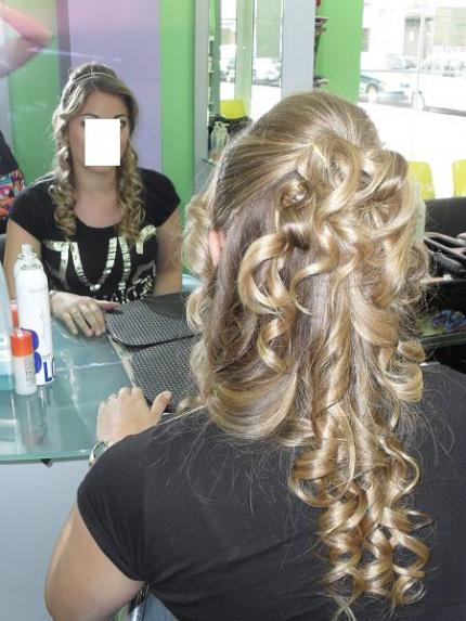 Os pongo un semirrecogido para novia, es la prueba, falta un poco de pulido ya que probamos varios y tube que cepillar por eso se ve algo encrespado, ¿que os parece la idea? A la novia le gusto y a mi tambien, la diadema va a cambiar, no es esa en concreto, es parecida pero con pedreria. Opiniones?
