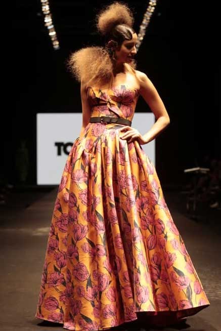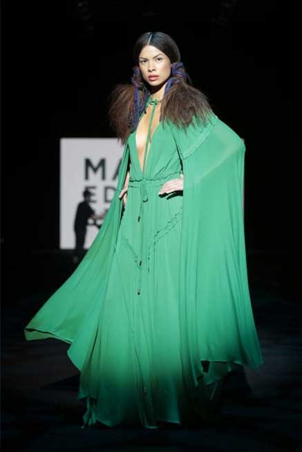 Maison Eduardo Sánchez: Eduardo Sánchez inició su carrera profesional en su Colombia natal, con la apertura de su propio salón en el año 1987. Tres años después se se trasladó a Europa, donde consolidó sus técnicas y demostró su talento en los mejores salones de la capital belga. En el año 1997, el peluquero abrió en Madrid el primer salón Dessange, considerado el buque insignia de la marca en España. Harían falta seis años más, para que Eduardo Sánchez abriera su segundo salón y se posicionara como referente de la alta peluquería. Ya en el año 2012, sería nombrado director creativo del grupo Dessange y portavoz para la prensa del grupo, así como creador de tendencias para la alfombra roja durante el festival de Cannes. Finalmente, en el año 2014 creó su propia firma, Maison Eduardo Sánchez, recibiendo el Premio al mejor Salón Concepto de Peluquería. La trayectoria del artista se vió reflejada en el desfile, donde sus peinados se caracterizaron por la elegancia, glamur, alta calidad, belleza y delicadeza característica del estilista.
