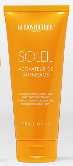 - Activateur de Bronzage. Emulsión tratante para preparar la piel antes de la exposición solar. Activa el proceso natural del bronceado, aporta hidratación y previene la deshidratación causada por el calor, la luz UV y el agua clorada o salada.