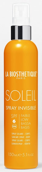Principios activos: cantidad elevada del activador del bronceado, estabilizadores de la hidratación, vitamina E, éster lipófilo del ácido málico, polisacárido vegetal y perfume. - Spray Invisible SPF 6. Espray solar ultraligero, resistente al agua y con activador del bronceado.
