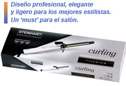 Las nuevas tenacillas de titanio Steinhart, con resistencia PTC y temperatura máxima de 200 ºC, son un must para el salón. Los barriles de titanio con nanoturmalina con que están fabricadas, nunca pierden el color y emiten iones negativos, facilitando el acondicionado del cabello, previniendo la pérdida de humectación y permitiendo la mejor penetración de nutrientes.