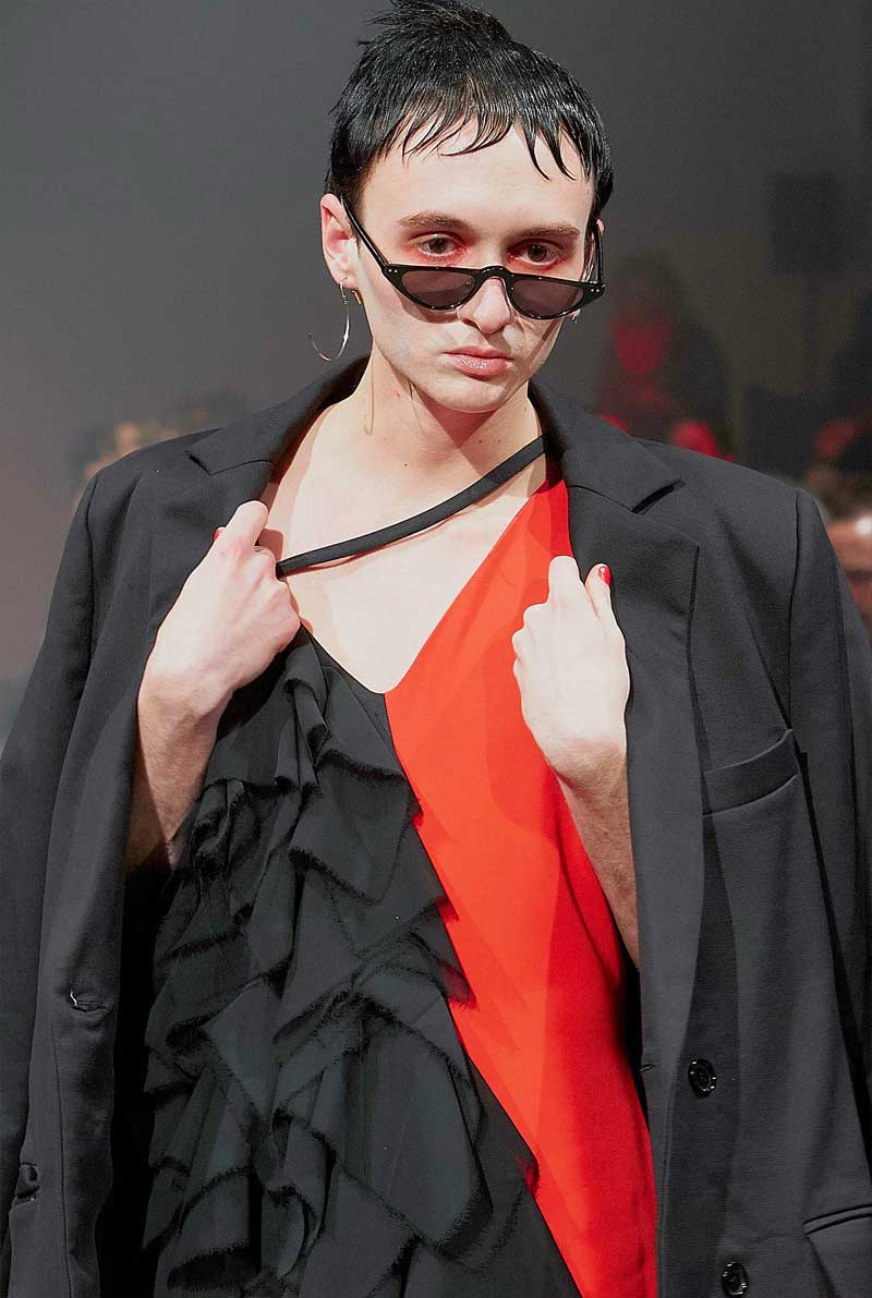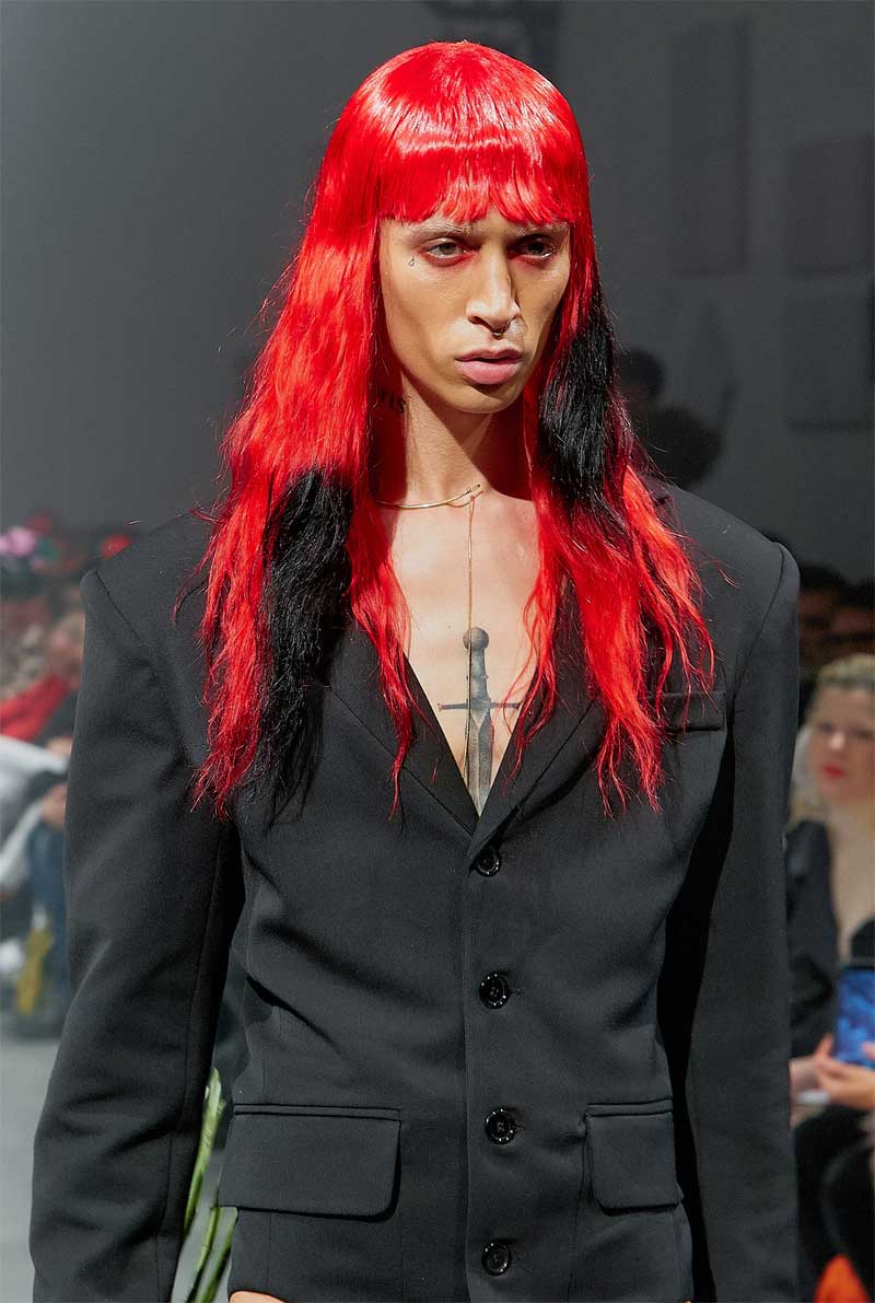 Peluquería y moda, porque The Hunger también revisa los fundamentos de la sastrería y el patronaje. Los tejidos se mezclan y superponen, flotantes, sin peso, en una paleta bicolor de llama y sangre, negro y rojo, como el cabello, cincelado a fuego cuando corresponde. Porque The Hunger es también dualidad, "la de la oscuridad y la calma, la de la pasión y la de la vida".