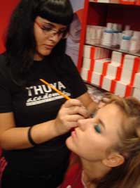 El stand, en convivencia con la marca Thuya Professional Line y situado junto a una de las plataformas de actuaciones y demostraciones de profesionales, tuvo una gran afluencia. El público pudo comprobar el talento de los alumnos y alumnas de peluquería y maquillaje de Thuya, que estuvieron haciendo exhibiciones de tendencias de forma ininterrumpida: corte y color, recogidos, posticería, maquillaje social…