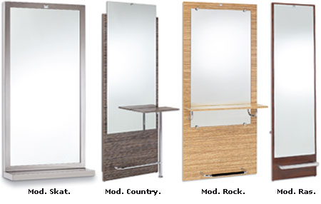 Ras llega en laminado mirta; Rock, en zebrano natural; Country, en zebrano; Skat, en plata; o Tok, en portland, el doble tocador. Todo a su gusto, para que la personalidad del salón se realce con los deseos particulares. Un tocador esbelto que refleja el arte y la creación del profesional peluquero.