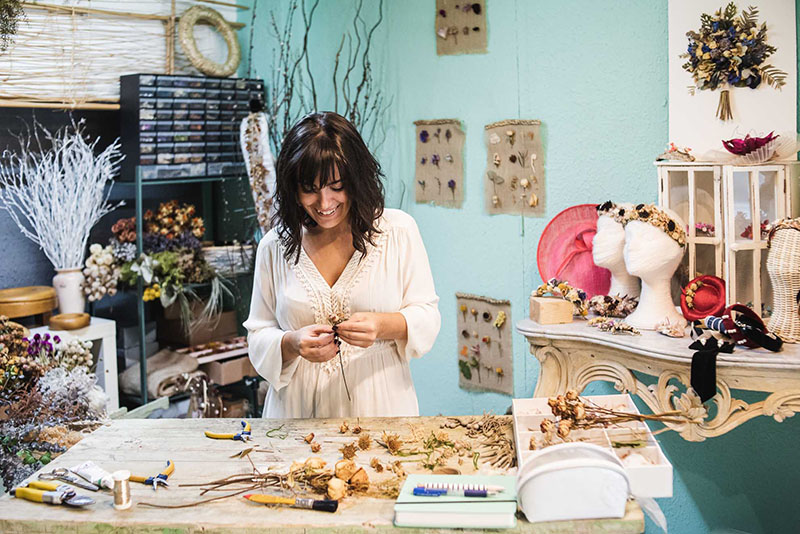Vivir de las flores. Una suerte que le ha tocado de cerca a Leyre Marin, directora creativa de la firma de tocados y accesorios, Leyma Boutique Floral. Vivir desde pequeña rodeada de flores le ha permitido conocerlas en profundidad, estudiarlas e investigarlas hasta dar con novedosas técnicas para crear tocados y accesorios florales únicos, especiales, con historia, bohemios y atemporales.