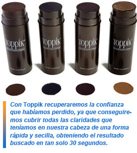 Con Toppik recuperaremos la confianza que habíamos perdido, ya que conseguiremos cubrir todas las claridades que teníamos en nuestra cabeza de una forma rápida y secilla, obteniendo el resultado buscado en tan solo 30 segundos. Su uso es factible tanto en hombres como en mujeres.