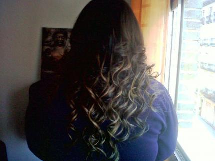 Estas que puse arriba son con extensiones de queratina, me las puse yo solita... 3 horas pero el resultado merece la pena no¿? jejejjee