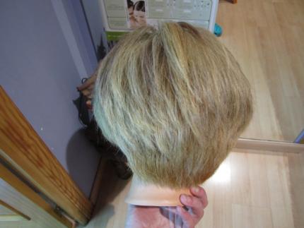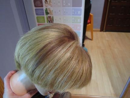 corte de muñeca...decoloracion....mechas internas dos tonos y superiores a bandas en flequillo.