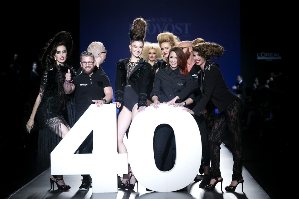 Franck Provost París celebró su 40 aniversario en el escenario, donde el lujo, la pompa y los volúmenes dominaron con texturas de gran elegancia y boato. Laboriosos moños trabajados con texturas y trenzas asombraron a un público entregado.