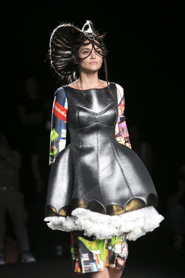 Sean Hanna, de Londres, llenó el escenario de una sensibilidad artística llevada a su máxima expresión. Una verdadera performance en el escenario. Presentó una colección con melenas largas, de colores vibrantes como el rosa pink y oro. También dominaron las trenzas y la mezcla de distintos materiales en sus trabajos.
