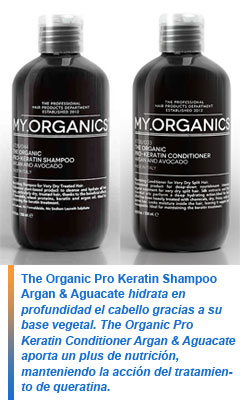 El tratamiento de queratina, de My.Organics, se compone de dos líneas: Organic Keratine Pure Treatment Amino Acids y Organic Pure Treatment Intensive Amino Acids. Una innovación que dota de proteínas y nutrientes el cabello. Con su uso, también se previene el encrespamiento y se alarga la vida del pelo.