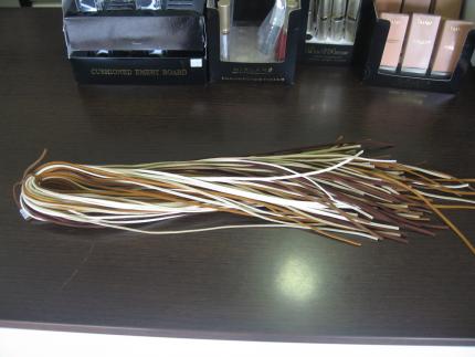 Yo las vendo, en colores tostados y marrones, son como tiras de ante muy chulas, salen bastante economicas y se pueden poner de pulseras y para hacer trenzas¡¡¡