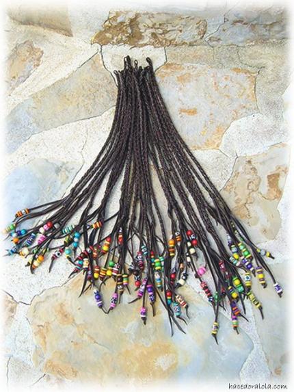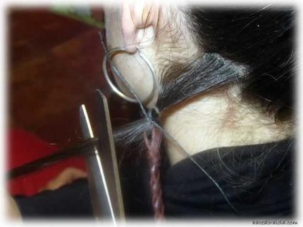 ams por cierto las que yo he visto hacer el pelo se coge de la nuca, y se entrelaza con la trenza de cuero.