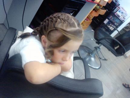 No, me refería a como lleva el flequillo por el otro lado que no se vé, me refiero a si vá con la raya al lado pero por esa parte si vá cogida a la trenza, y no con algún mechón suelto o algo como en el otro lado.