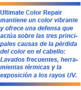 Ultimate Color Repair Conditioner: un acondicionador que hidrata y desenreda el cabello, especialmente en aquellos coloreados. Es un producto hidratante y desenredante diario ideal para cabellos coloreados. Engloba antioxidantes que proporcionan protección UV para prevenir la pérdida de color y el daño al cabello.