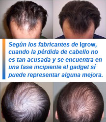 En cualquier caso, los fabricantes de Igrow advierten de que no existen los milagros. Es decir, si una persona sufre una alopecia muy avanzada resultará imposible que el dispositivo pueda ejercer alguna mejora. En esos casos resulta irreversible, pero cuando la pérdida de cabello no es tan acusada y se encuentra en una fase incipiente el gadget sí puede representar alguna mejora. En su web, la propia compañía muestra los resultados.