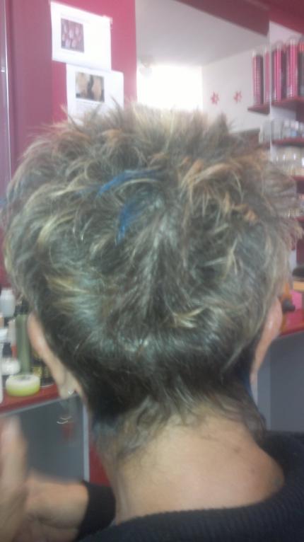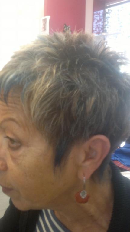 He aprovechado el tono rubio que llevaba en las mechas de hace un mes...se ve más vistoso al natural, en las fotos se ve más apagado, le ha gustado mucho a la señora, besos.