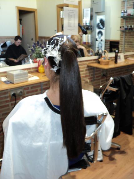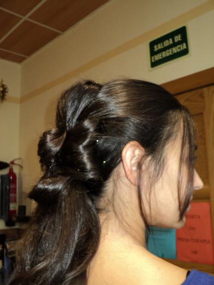Este trabajo no tiene merito de hacer cuando el cabello tiene otra calidad y menos largo, encima la novia queria la coleta del principio, ni esa quedaba graciosa , la descartamos, pero no queria nada muy bajo y todo que probamos terminaba bajo , encima no queria despues nada suelto tan largo, ufff y para que se dejan semejante melena? si despues de la boda se la quiere cortar, no lo entiendo